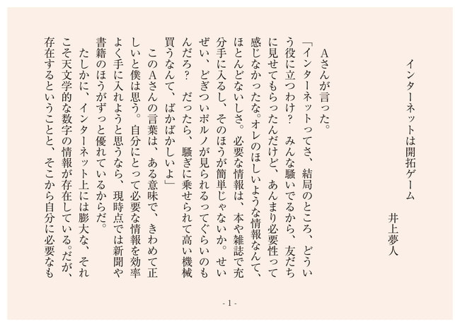 ネット上で『99人の最終電車』という小説の配信を始めたところ、様々なメディアで取り上げていただくことになりました。〈CREA(クレア)〉というのは文藝春秋社で発行している女性向けの月刊誌です。コンピュータの専門誌をはじめとして一般の雑誌でも取り上げられたのですが、文芸誌・小説誌からはあまり興味を持ってもらえませんでした。業界では僕がやっていることを小説としては認めていただけなかったようです。扱い方がよくわからなかった、というのが本音だったのだと思います。